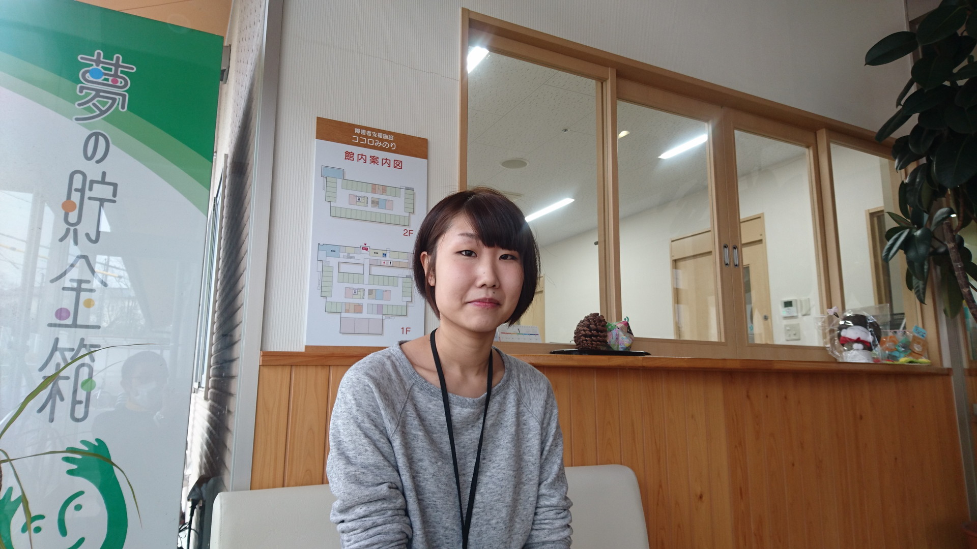 仕事内容ですが主に知的障がいのある方の生活支援を行っています。利用者の方々は1人1人個性が様々です。利用者の方々全員が健康的でより良い生活が送れるように、日々相手に合わせた支援の提供を心掛けています。私は元々保育士になりたかったのですが、在学中に知的障がい者の入所施設に実習に行き、利用者の方々がどんな小さなことでも「ありがとう」と言ってくださることが嬉しくて、障がい者施設に勤めたいと思うようになりました。就職して1年目は、利用者の方との関わりに戸惑うこともありました。しかし、先輩職員からのアドバイスもあり、今では利用者の方々と冗談も言い合える仲になり、毎日の仕事の楽しみになっています。