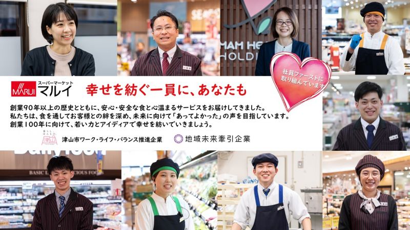 「うまいものなら何でもマルイ」。私たちが創業から大切にしている商売に対する価値観です。変化し続けるお客様の食生活、ニーズにスピード感を持って対応していくためにも、社員一人ひとりが食のプロフェッショナルになるべく、研鑽を積むことが必要です。社員が一丸となり、地域の皆様の豊かな食生活の実現に貢献できる企業であり続けることをお約束致します。