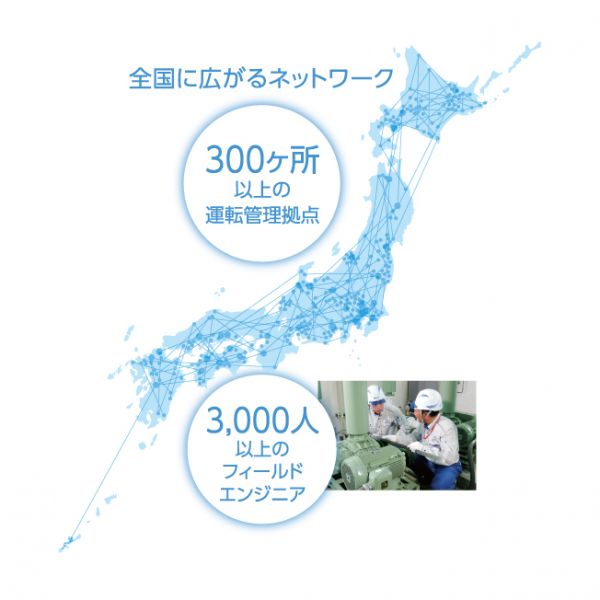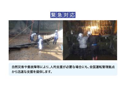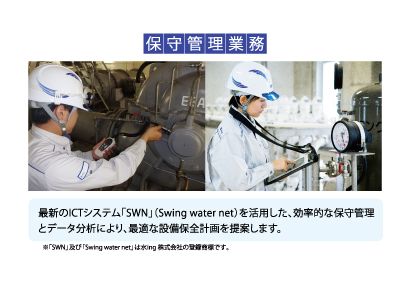 家庭や事務所・工場から収集されたし尿や浄化槽汚泥を処理、その工程で発生する汚泥を助燃剤として資源化し、循環社会を支えています。その他水質管理や設備機器保全、中央監視業務など総合水事業会社である水ingグループとして全国に約300箇所の維持管理現場を持ち、約3000人のフィールドエンジニアが水の安全・安心を通じて持続可能な社会づくりに貢献しています。