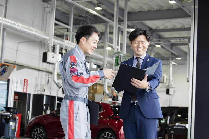 商談から納車・点検・アフターフォローまで、すべての営業活動を店舗で行う「店舗完結型総合営業スタイル」で、お客様に商品を見て・触って・納得していただく。そして、お客様の立場に立ったコンサルティング活動を行うことで、お客様のカーライフをトータルにサポートすることを目指しています。