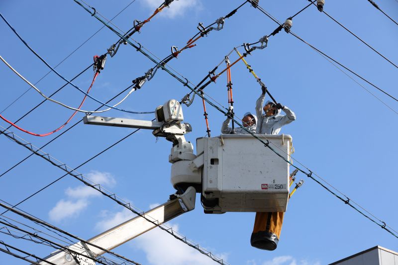 電気の安定供給のため、直接電柱に登ったり高所作業車を使用して、電柱上の電線や変圧器等の取替を行うメンテナンスや災害時の復旧作業を行