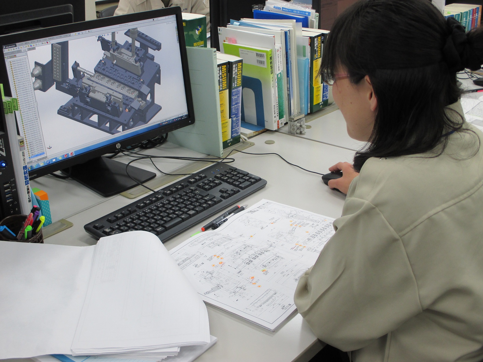 配属後は主に部品図等の作成業務に当たってもらいます。その間、先輩からのOJTで技能と知識を蓄えて頂き、徐々に製図業務から設計業務へと移行してもらいます。