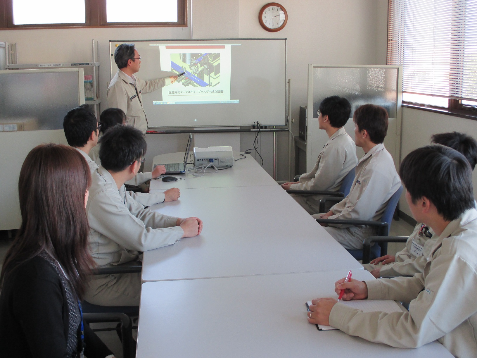 新入社員研修は大阪市内が一望できる本社の研修ルームで実施。6月以降に各課や事業所に配属されて、それぞれの雰囲気へとなじんでいきます。ちなみに上河原にある津山事業所は静かな雰囲気で集中して仕事に打ち込めます。