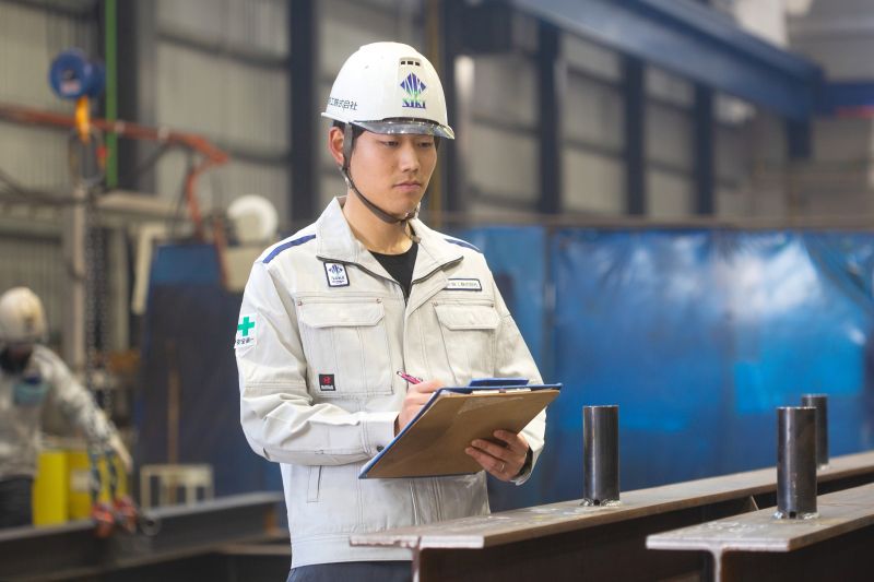 製造部門:当社で設計した図面を元に鉄骨を組み立てます。仕事に必要な資格は入社後に取得できるのでしっかりと手に職をつけることができます。