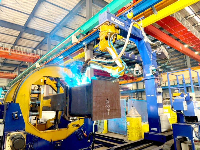 半世紀という長い歴史の中で現代に欠かせない「鉄骨」という素材を通じて様々な社会インフラの構築に貢献してきた当社。国土交通省が認定する「Hグレード」認定を取得し、最新鋭の溶接ロボットが17台も活躍しています。