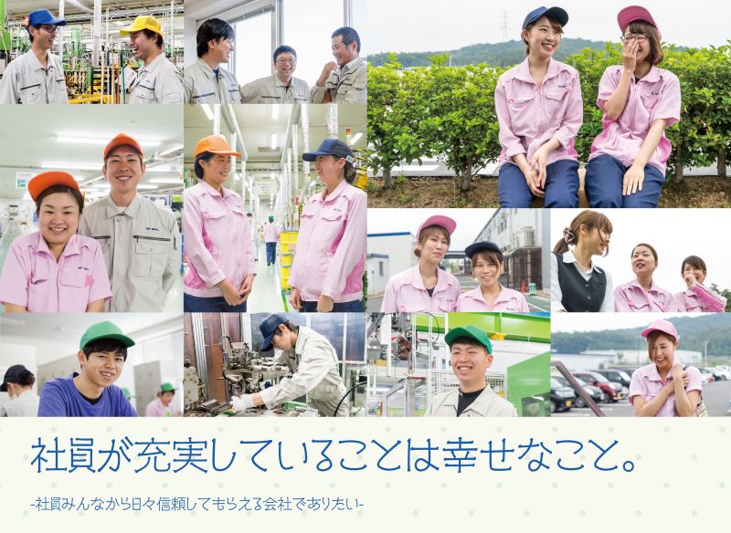 男女比率は、同じくらいで10代から60代の幅広い年齢層の方が活躍しています。通信教育等の制度もあり、意欲的にスキルアップに取り組む方がたくさんいます。また、会社全体で改善活動にも力を入れており、社員全員がお互いに助け合い、信頼しあいながら、良い製品つくりたいという同じ目標に向かって取り組んでいます。当社には未経験でいちからのスタートでも安心して働ける明るく活気あふれる職場環境 、教育制度があります。また資格取得や通信教育も社内で受講できる環境があり、 費用面でも会社が全額負担する制度を設けており、社員のやる気を全力でサポートしています。