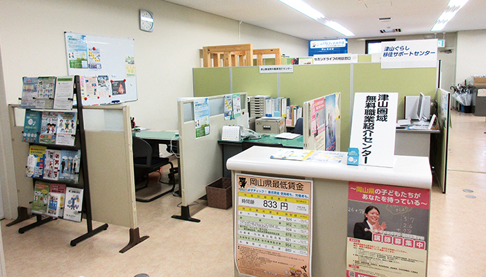 津山市・鏡野町・勝央町・奈義町・久米南町・美咲町の1市5町では、共同で津山広域事務組合を設置し、津山圏域無料職業紹介センターを運営しています。