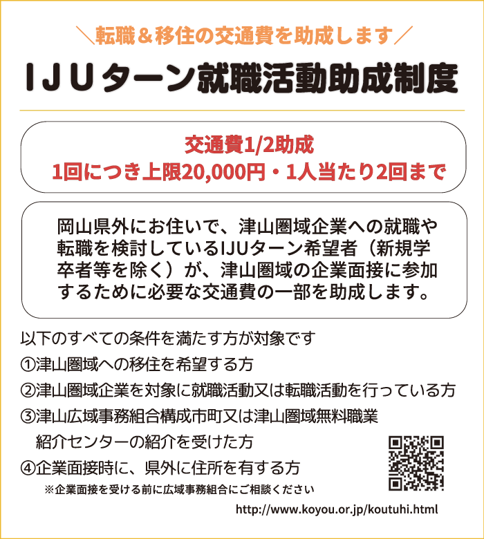A.津山圏域無料職業紹介センターは、津山圏域内の定住化促進のため、ハローワーク津山などの関係機関の協力と連携のもと、お仕事を探されている方、従業員を探されている事業所のお手伝いをしています。